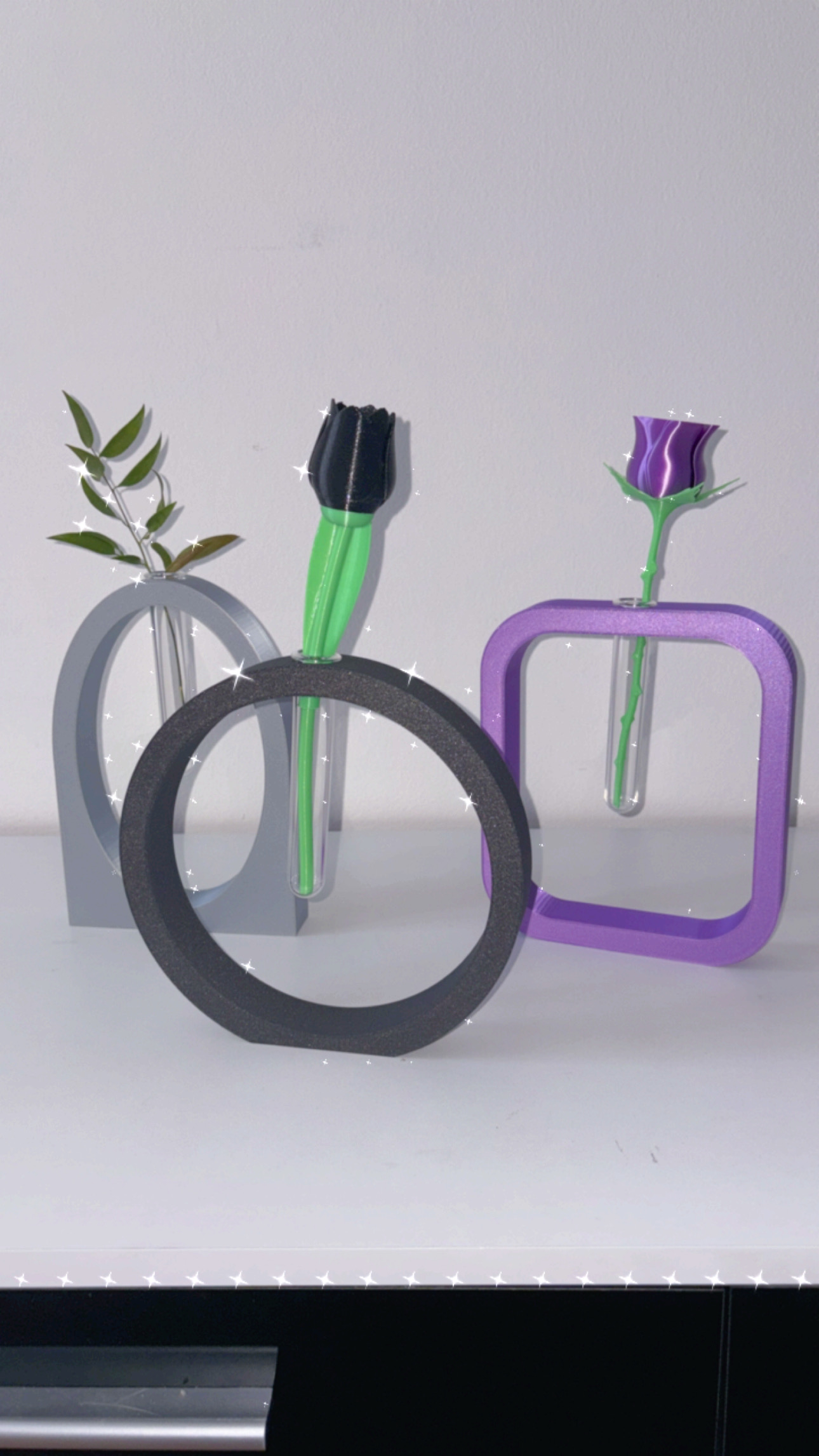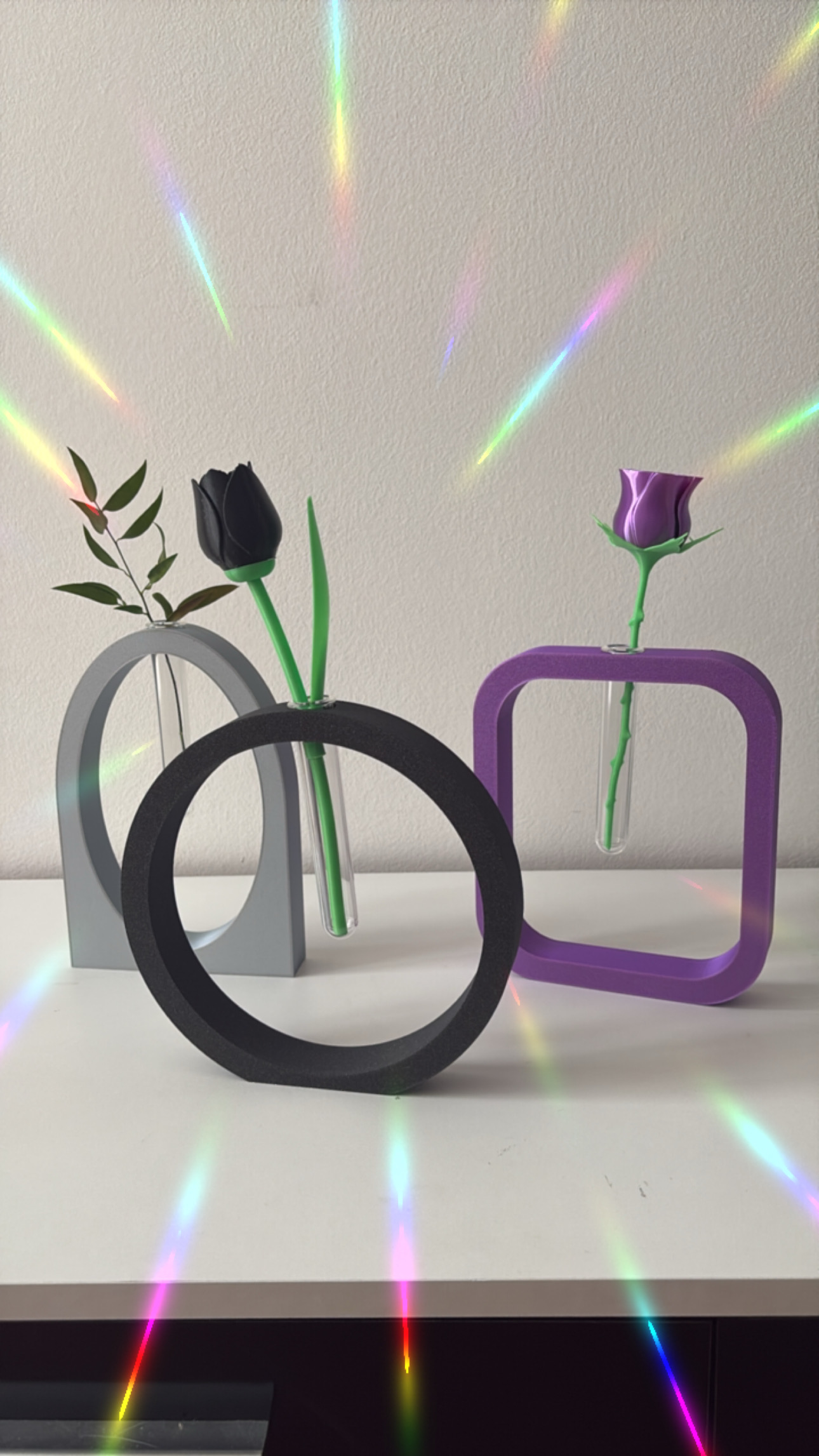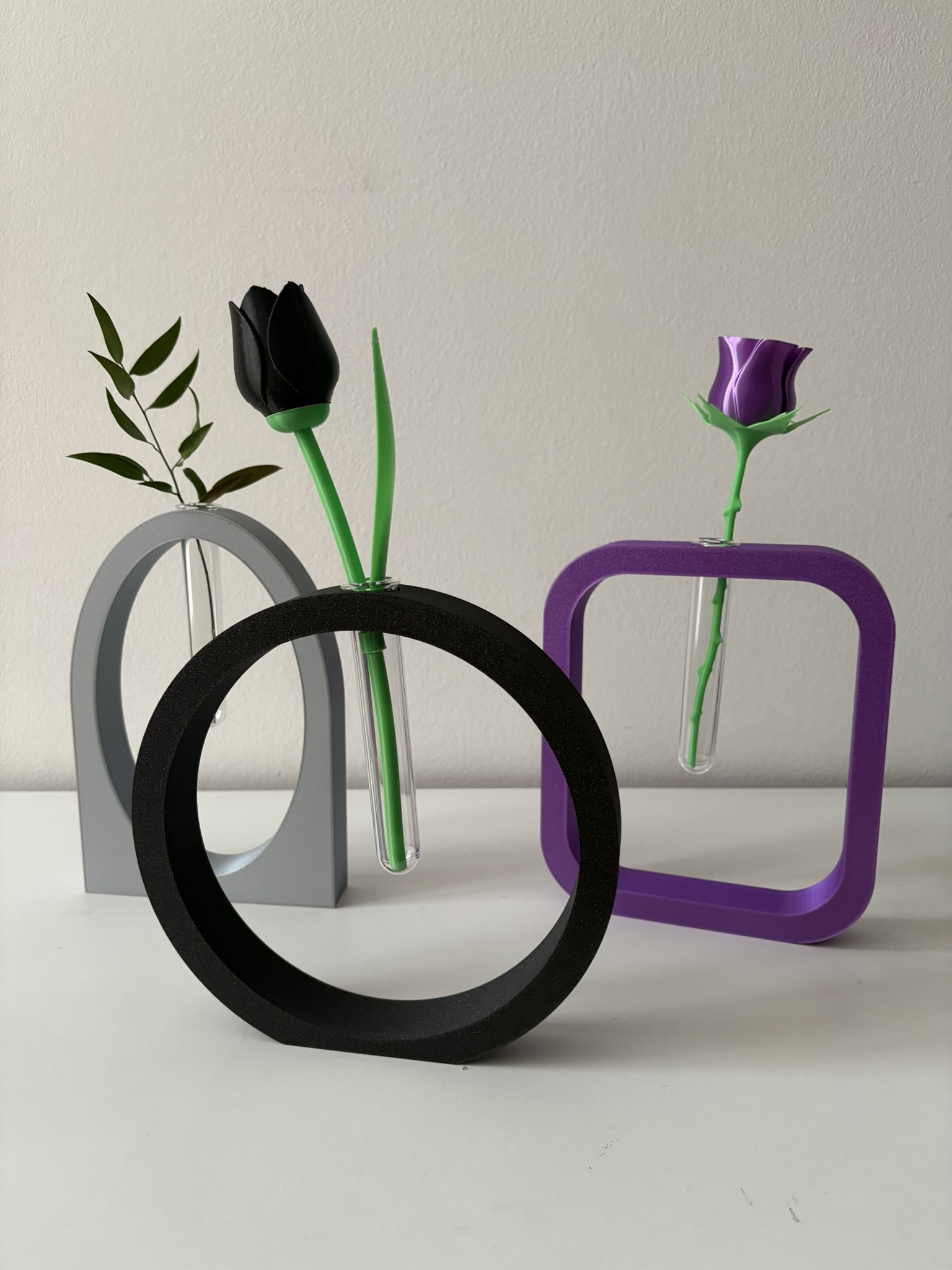 Dai un tocco originale e contemporaneo ai tuoi spazi con questi eleganti vasi stampati in 3D! Ogni pezzo è progettato con cura e realizzato artigianalmente con materiali di qualità. Il design sospeso, con provetta trasparente integrata, crea un effetto di leggerezza e modernità, perfetto per fiori singoli, fiori artificiali o rametti decorativi.