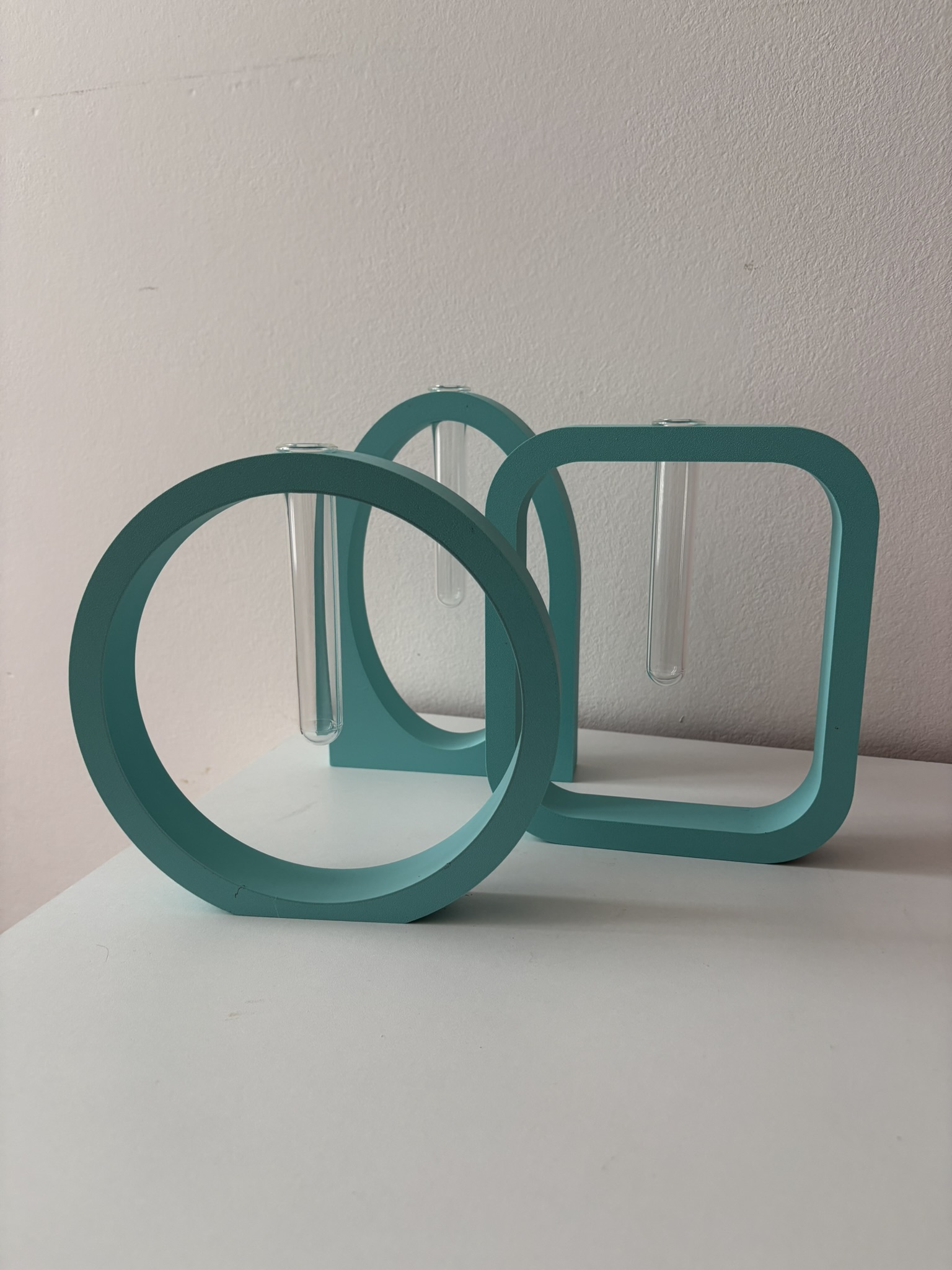 Ogni pezzo è progettato con cura e realizzato artigianalmente con materiali di qualità. Il design sospeso, con provetta trasparente integrata, crea un effetto di leggerezza e modernità, perfetto per fiori singoli, fiori artificiali o rametti decorativi.